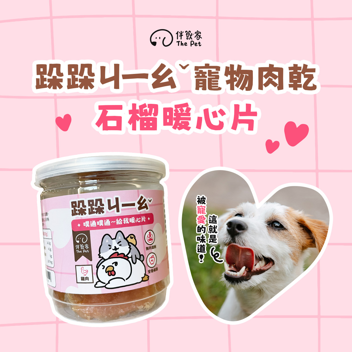 無論是日常小點心、訓練獎勵,還是節日寵愛時刻,伴獸家雞肉零食系列都能成為毛孩最期待的幸福小確幸。