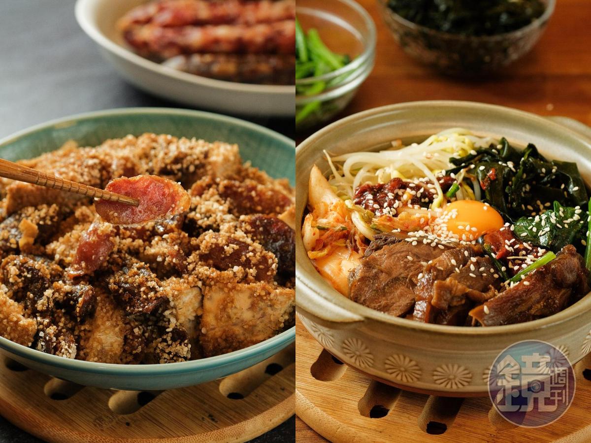 如「野生烏魚子炒飯」她以生菜鴿鬆的方式呈現,最後撒上拍碎的洋芋片,增添脆感鹹香;吳恩文則加碼「滷牛腱」結合韓式石鍋拌飯,焦脆的鍋巴與川味辣香交會,讓中式滷味揚起異國風。