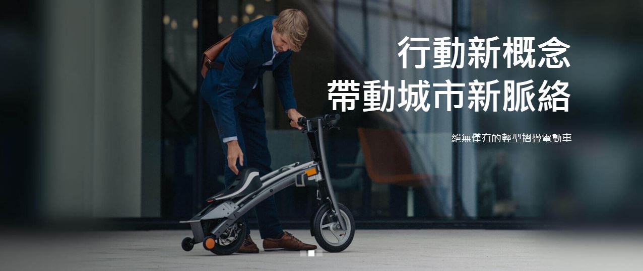 在未來的城市裡您即將遇見一部綠能輕型摺疊電動車,輕便攜帶,無需腳踩輔助,只需發動電源轉動手把,輕輕鬆鬆到達目的。