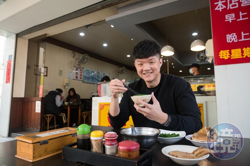 清湯裡飄著魚肚白,肉質細嫩無刺,油脂Q潤不軟爛,突破成見後的Jimmy還會加碼滷魚肚、魚頭,尤其是魚臉頰肉膠質滿滿,行家都懂點。不過對他而言,最不可或缺的是「豬腳筋」,炸過再滷,鎖住香氣,「一試就愛上,滷得QQ的,這也是我來台灣後才懂得欣賞的口感。」