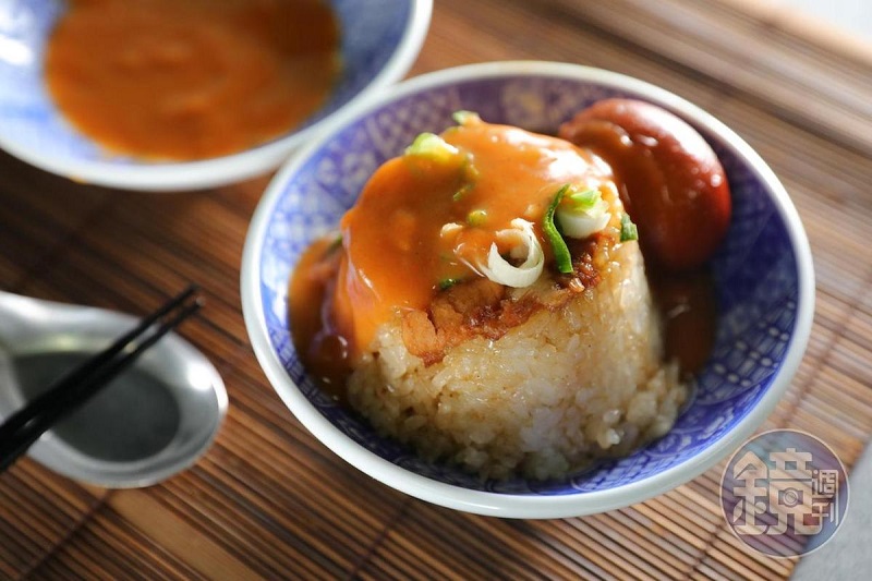 不同於台中市區的米糕名店喜歡用長糯米,追求米粒鬆爽、粒粒分明的口感,清水地區的米糕用的是炒過的圓糯米,蒸煮後香甜軟糯,還要淋上濃稠的油膏,黏滑伴著滷肉香。