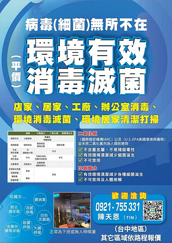 店家、居家、工廠、辦公室消毒、環境消毒滅菌、環境居家清潔打掃 (台中地區,其他區域依路程報價)