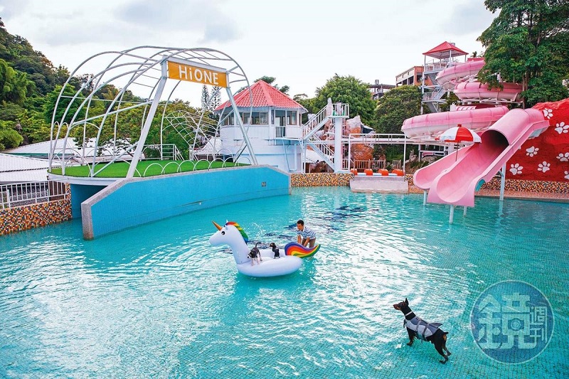這是一間以毛孩子為主角的樂園,園區內設計了許多人寵可以一起共享的設施,炎炎夏日,最吸引大夥的當然是超大型泳池「水世界」,毛孩們可以盡情消耗體力,玩得全身濕答答也沒關係,旁邊就有讓寵物洗澡、吹毛的設備。