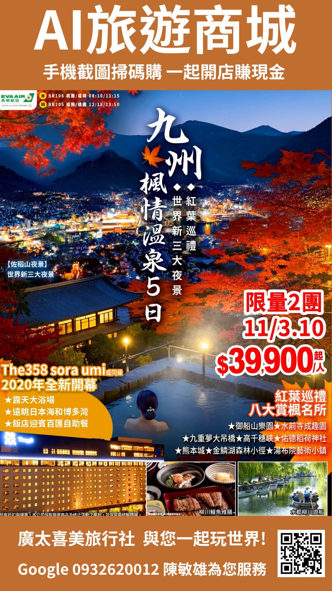 AI旅遊商城限時推出【九州楓情溫泉5日遊】!