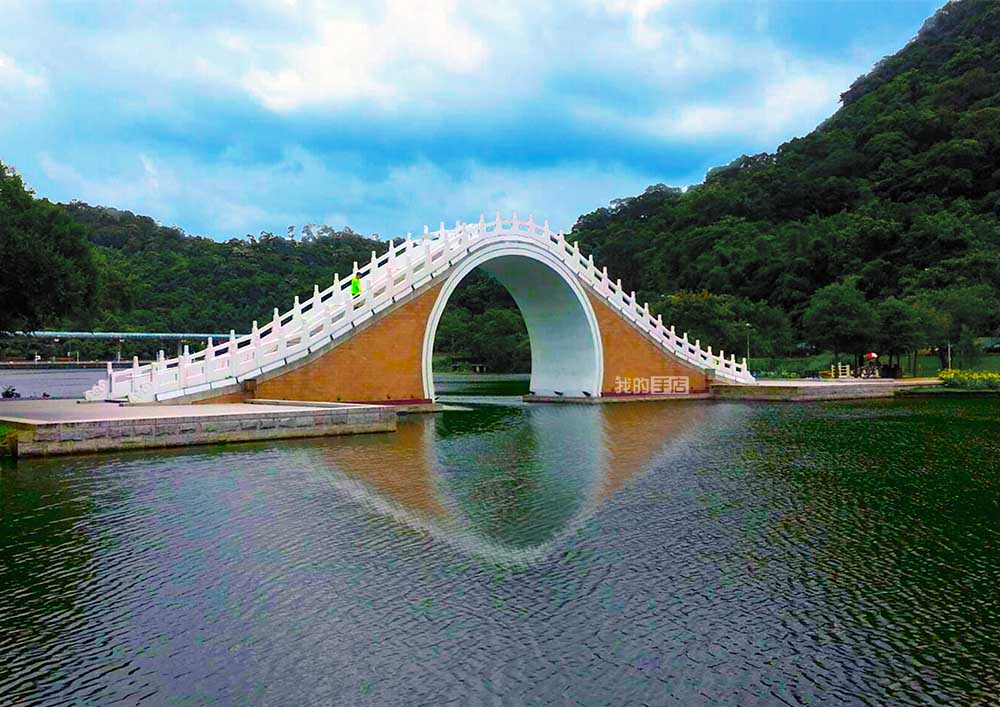 南面毗鄰白鷺鷥山、遙指五指山,北面為鯉魚山、忠勇山,湖面如鏡,視野開闊,拱橋彷彿垂虹,景色秀美。 #waa2114