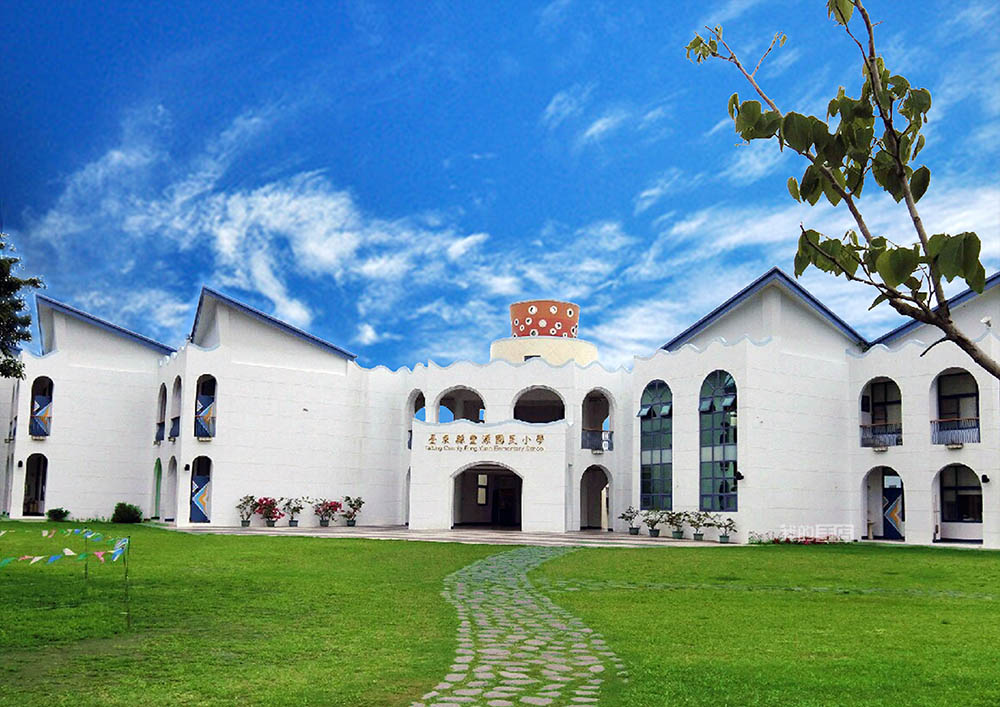 50年歷史校舍建築透過巧思將地中海藍白景致的新建築,對映著青山與藍天搭配純白,勾勒出希臘愛琴海般的浪漫風情!