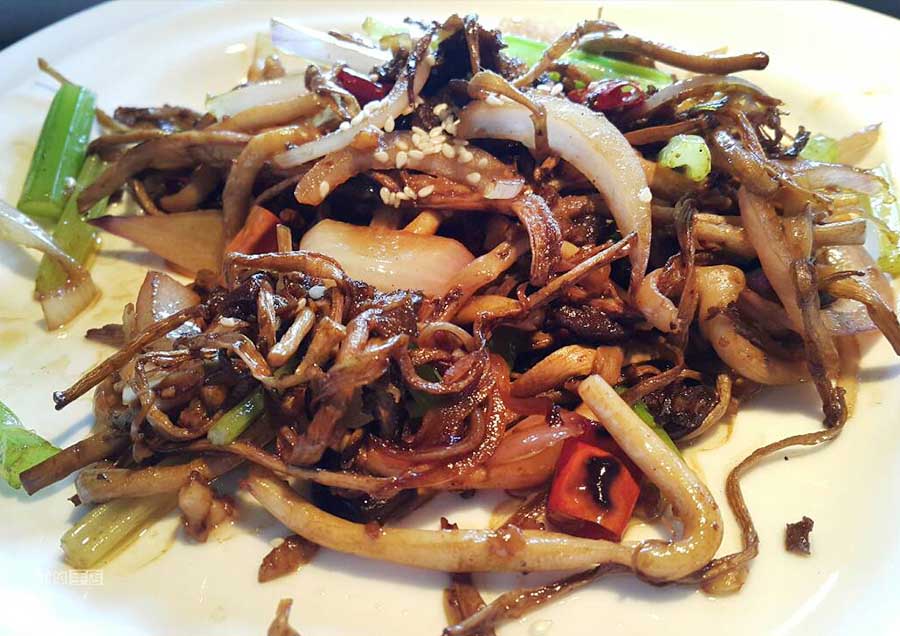 以秘製醬汁醃製新鮮牛里脊,再用3-4成的油溫滑油成8成熟,配以蒜泥、黑椒等翻炒一番並以生菜墊底裝盤,色彩鮮艷,肉質嬌嫩,蒜香輕飄,是中西口味的完美結合,迎合了眾多食客的口味。