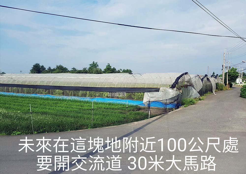 此地位於未來中科四期交流道口附近,未來30米 大路旁,現臨7米大路,交通動線非常好,地形方正完全無抗性,目前現場更種高經濟樹種,未來增值性可期!