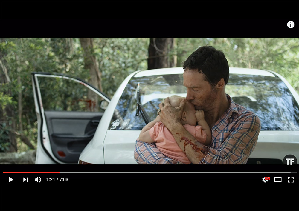 開頭的時候爸爸在車中醒來發現旁邊的妻子竟然變成殭屍,情急之下被妻子咬了一口,知道自己在過不久也會變成殭屍,在剩下三個小時不到的時間,想到車上還有自己的孩子,完全不知道該怎麼辦的時候,還是拿起地圖找出一條可能安全的路線,在手上計算到達時間...為了孩子能夠活下來賭上一切的機會往前走...路途中為了安撫孩子吹了一顆氣球,可以說是給孩子最後一個禮物與安慰,讓他知道爸爸一直都在,當快撐不下去時...為了自己在沒有意識的情況下不攻擊孩子還能夠帶者他走到目的地,竟然...在自己面前掛著一袋肉,完全跳脫我們的思考模式,影片曝光後短短兩個月2月内youtube的點擊量就將近150萬,現已超過千萬點播次數,如果你沒看過...就快靜靜的把他看完吧