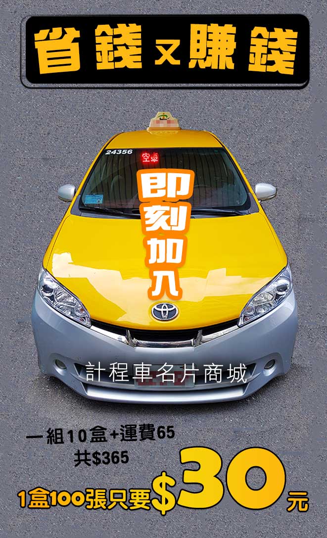 開了計程車好像生意愈來越難做!? 只要印名片一盒30元,就幫你連結手店商城,顧客下單簡訊通知,收入就到你戶頭!