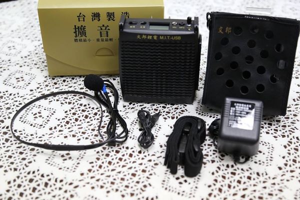 包含手提外盒*1, USB擴音機主機*1, 變壓器*1, 手工麥克風*1, 背帶*1, 傳輸線*1, 說明書*1 ❃ 最新USB, SD卡播放功能, 12W音量超大適合室內外使用 ❃ 內建日製鋰電池: 重量輕, 充電一次可耐20-25小時 ❃ LCD液晶顯示電池存量,減少不經濟的充電次數,保護電池使用壽命 ❃ ❃ 尺寸: 12 x 11 x 15 cm, 350 g ❃ 最大輸出功率: 12W, 機身重量輕, 聲音超大 ❃ 台灣製造, 保固1年: 貼有保證卡,本產品主機板保固12個月免費維修(非人為因素損壞),麥克風為消耗品不列入保證範圍。