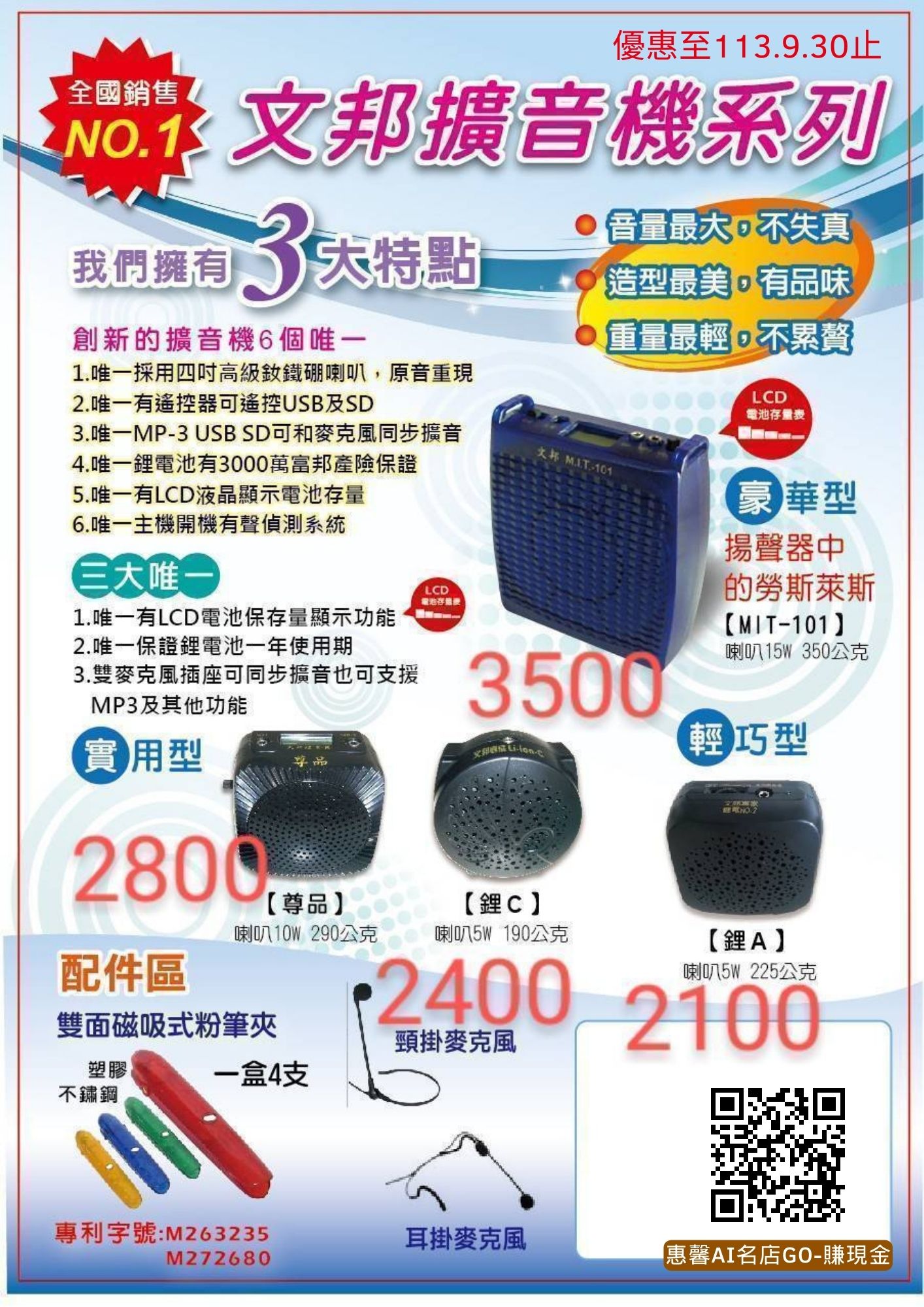 文邦從三十年前成立以來,致力於提供最專業, 最高規格的擴音機, 各式麥克風, 以及粉筆匣,廣受喜愛,銷售破數十萬台,產品與售後服務品質皆令各界滿意。手工麥克風系列更是品質堅固, 簡樸耐用, 廣受許多消費者喜愛。