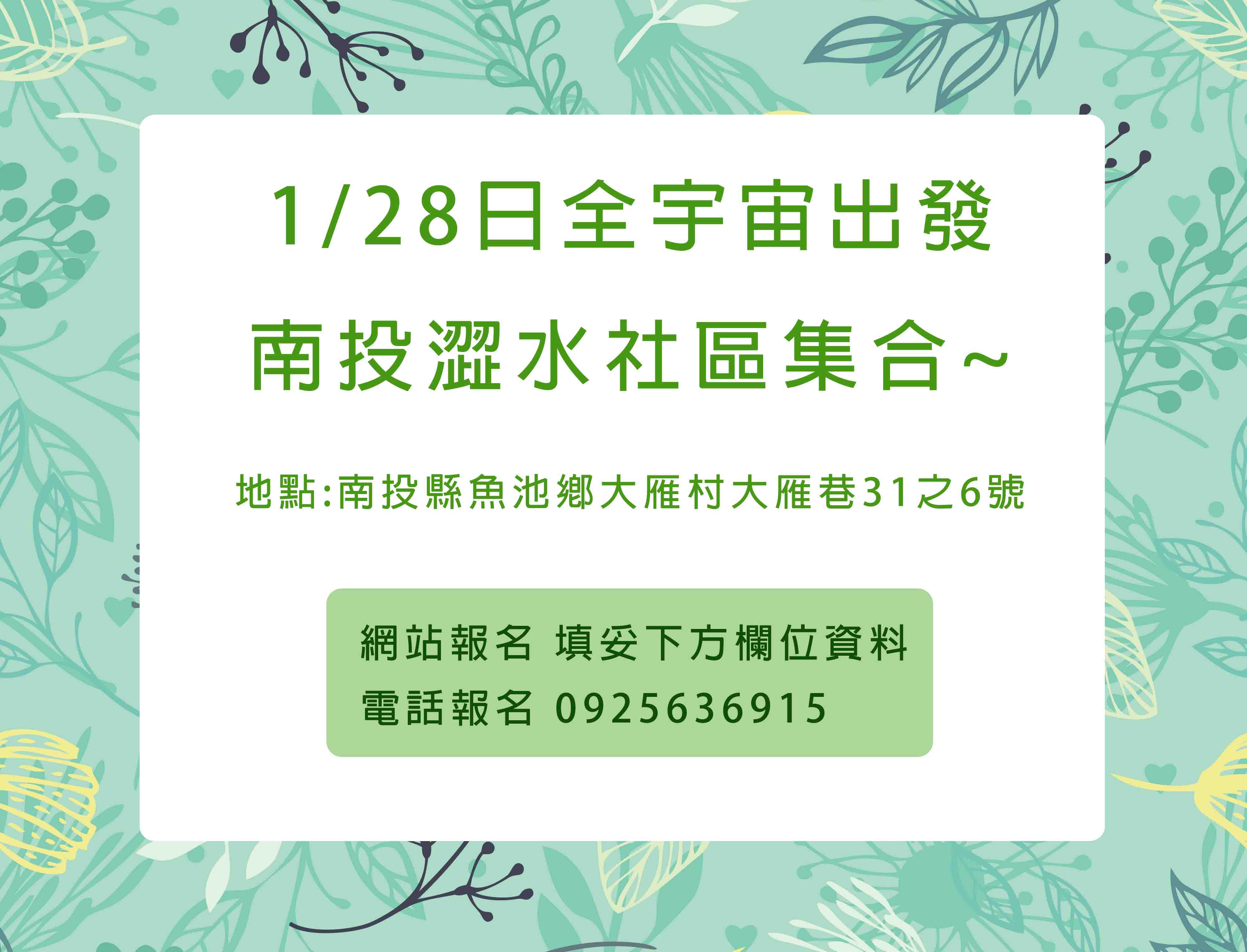 1/28日全宇宙出發,南投澀水社區集合喔。