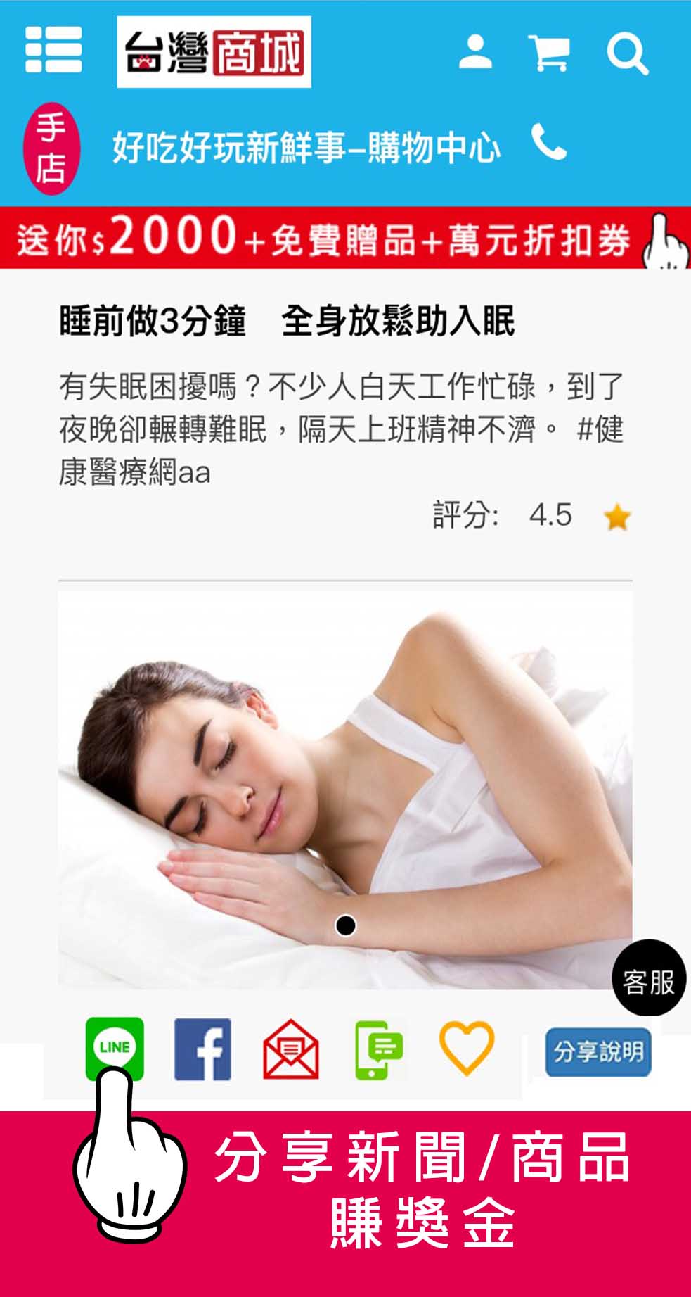 1開商城 > 右下加入賺錢 2分享新聞/商品 3全品項分銷獲得獎金