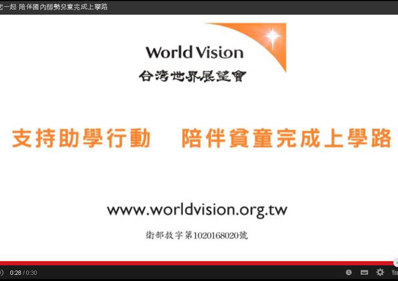 為幫助弱勢學童能順利上學,台灣世界展望會透過助學金發放、設立學生中心,以及大專生教育促進扶助等方案,使弱勢學童也能獲得足夠教育資源,擁有平等的學習機會,每年延續超過5萬名貧童的上學路。